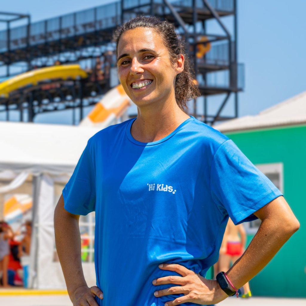 Sonia está al frente de Hi Kids desde su primera edición. Es graduada en Educación, socorrista y la encargada de que todo funcione dentro y fuera del agua.